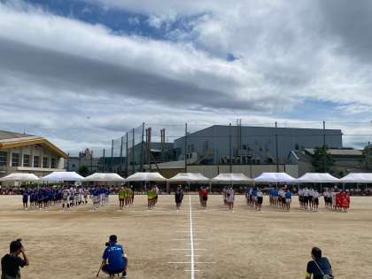 天候により、グランド状況からプログラム変更、1時間程度の遅延でスタートした本年度の体育大会でしたが、その後好天に恵まれ午後の部は45分遅れでスタート!