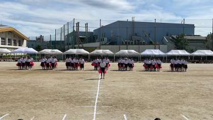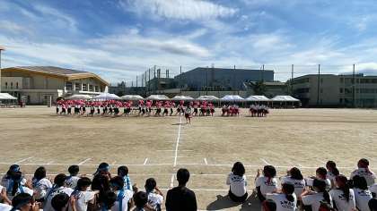 各学年種目では、本部・保護者席に向けて演技をする為、他学年生徒、保護者は本部席前を解放しています。