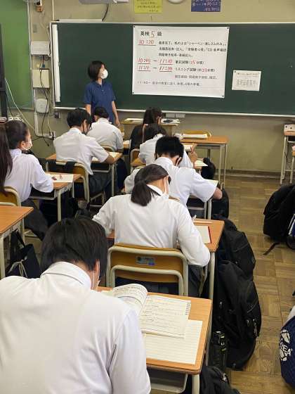 1時間目のチャイムで各級ごとに指定された教室に移動して自習です。