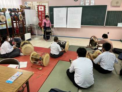 先日の朝文研の活動では、文化祭で発表予定の「民族楽器演奏」の練習を行いました。今回、練習したのは「チャンゴ」という楽器。みんな今までに何回も演奏していたこともあって、かなり上達は早いです。今後は演奏の完成度を上げていくように頑張っていく予定です。
