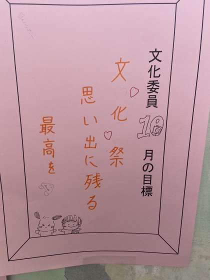 文化委員の今月の目標は「文化祭 思い出に残る 最高を」に決まりました。