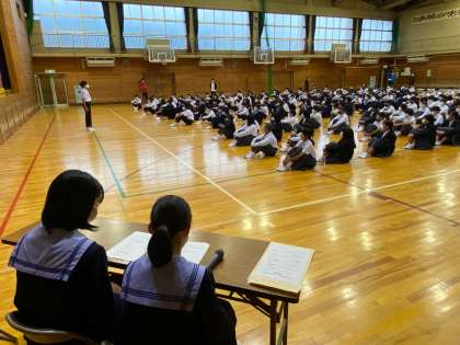 先週の金曜日6時間目、体育館で令和4年度後期生徒会役員選挙が行われました。