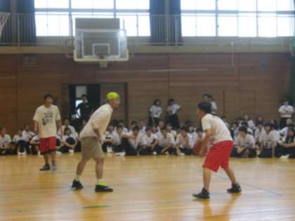 先日の土曜授業で、アメリカ プロバスケットボールで活躍した選手を招いて講演会を行いました。