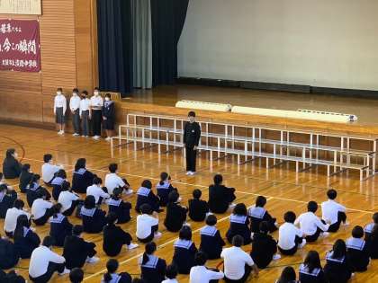 また、今週末の文化祭に向けて、3年生は3年間の集大成としての発表をしてほしい、1・2年生は3年生のその姿を糧に、来年再来年の自分たちの目標として姿をしっかりと見て、今の取り組みの経験をその時に活かして欲しいとお話になられました。