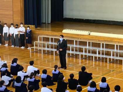 続いて、校長先生から、いよいよ秋本番となり、気温が下がっているので、体調管理をしっかりとしてほしいとお話がありました。