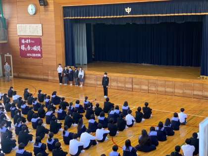 そして、昨日より始まった3年生の進路懇談がスタートしたことに触れられ、今後の進路選択をどうしていくのか、しっかりと担任の先生とお話をして欲しい、1・2年生は来年、再来年には自分たちの学校生活にそのような流れがあることを知って欲しいとお話になられました。