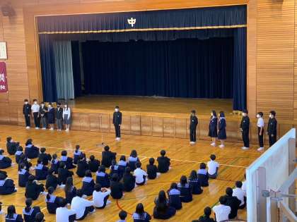 まず、生徒会長より、寒くなっているので、テストに向けて体調管理に気をつけようとお話がありました。