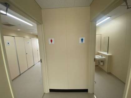 床は乾式で全て洋式便器、照明・換気扇・洗浄(男子小便器のみ)は全て自動となりました。