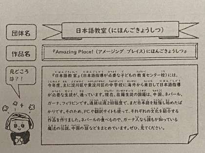 最後の展示会場はパソコン教室です。ここには今年度、淡路中学校に開校した、日本語教室の展示がありました。