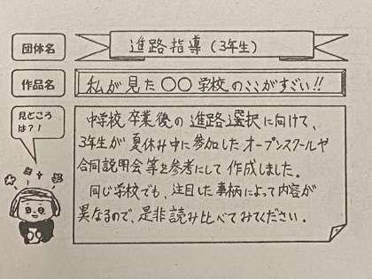 と題して、生徒が進路学習で調べ学習をまとめたものが展示されていました。