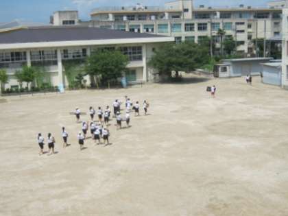 小学校の先生方から「ありがとう」の感謝のことばを受け、にっこりと笑顔を返す淡中生。暑さが厳しい中でしたが、さわやかな空気が吹き抜けたひとときでした。