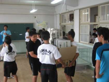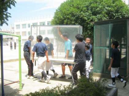 この日は淡路小学校の物品を一旦淡路中学校で預かる作業が行われました。あらかじめ小学校の先生方が整理された品々をお隣の中学校まで運搬します。部活動で登校している生徒もお手伝いに参加し、スムーズに作業が進みました。