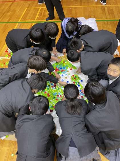 今年は、ペットボトルのキャップ等を使って、大きなクリスマスツリーを作ることに挑戦!