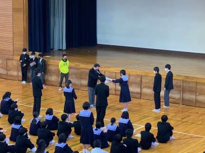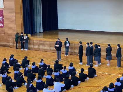そして、先ほどの表彰を受けて、淡中生がそれぞれの場面で大変頑張ってくれていることを嬉しく思うと、お話になられ淡路中学校の伝統を引き継いでいって欲しいとお話になられました。