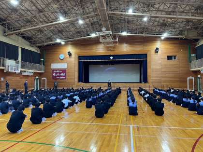 続いて、生徒指導主事の増田先生より、冬休みの過ごし方、そして、法律という世の中のルールに触れながら、ルールを守って冬休みを過ごしてほしいとお話になられました。
