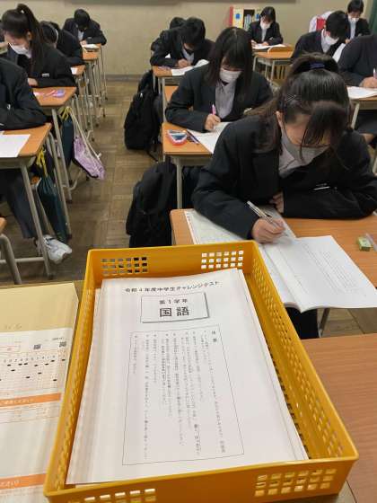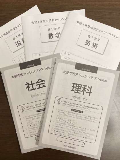 一方、1年生は大阪府チャレンジテストの国語・数学・英語の三教科に加えて、大阪市独自のチャレンジプラステストとして理科・社会が実施され、合わせて2年生と同じく五教科を受検しました。