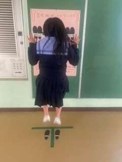 放課後、早速生徒が検査の手順通りの運動を行い、測定していました。『良かった、私曲がってへんよな』とみんなで大笑い。