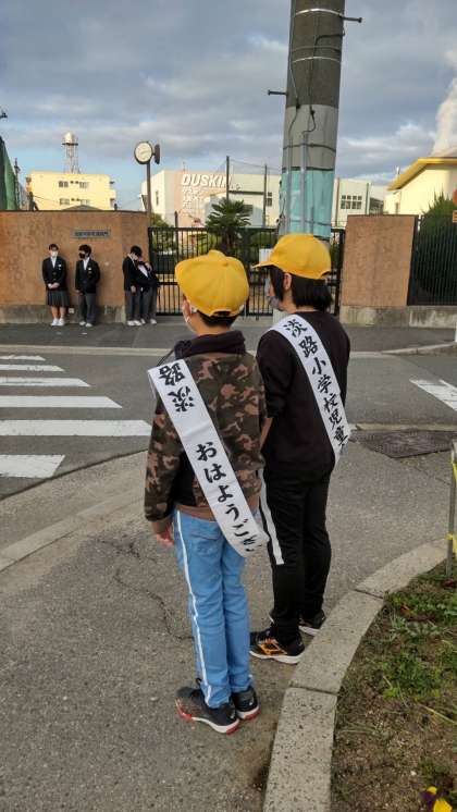 小学生が中学校前で、中学生が小学校前であいさつの交流があり、登校する児童生徒もいつも以上にあいさつが交わされてように思います。