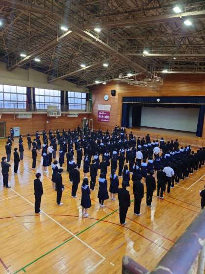 校長先生からは、いよいよ入試が目の前にせまった三年生へ向けて、これまでの努力を信じて自信をもつように、また1・2年生は、入試を先のことと思わずに日々の授業、勉強を大切にするようにとのお話がありました。