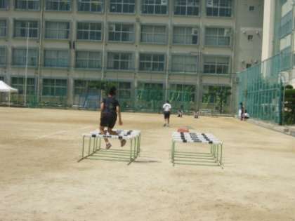 部員の皆さんは互いに声をかけあいながら、懸命にメニューに取り組んでいました。(陸上部の皆さん、これが終わったらご褒美のプールが待っていますよ!)