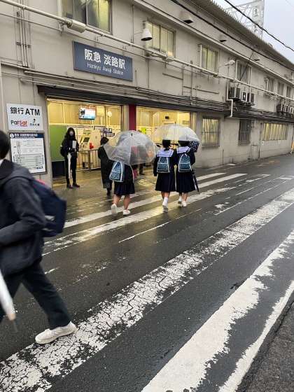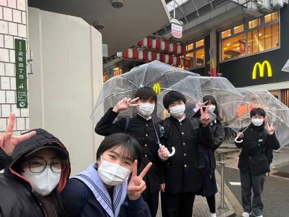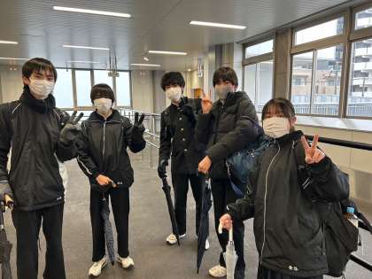 悪天候の中ですが、最寄駅に学校ごとに集合し、全員元気に出発しました。