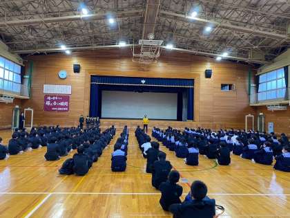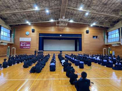 まずは校長先生より、朝のあいさつの後、3年生のみなさんお疲れ様でした。