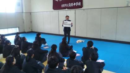 「自尊心を持ってほしい。お互いの『ちがい』を認め合える学年になってほしい。」という萩原先生の話を、生徒は真剣に聞いていました。