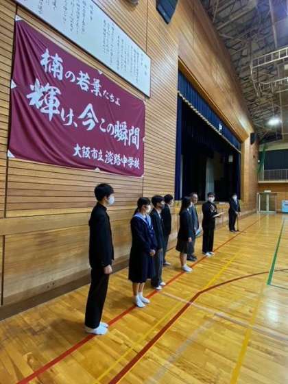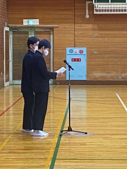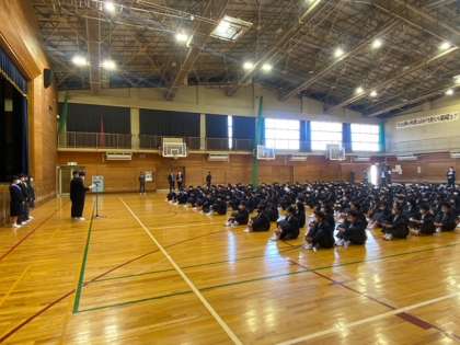 対面式の後、生徒会総会が開かれ、昨年度から議論してきた校則の改変の報告が生徒会長からありました。