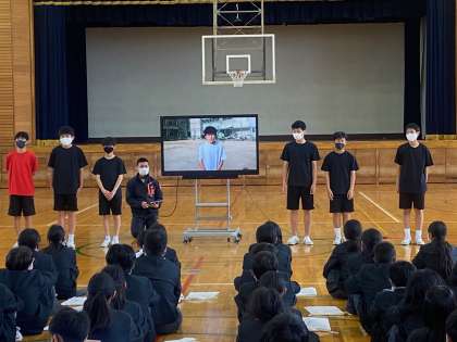 真ん中のモニターで部活動の様子を競技種目ごとに動画再生でアピールしました。