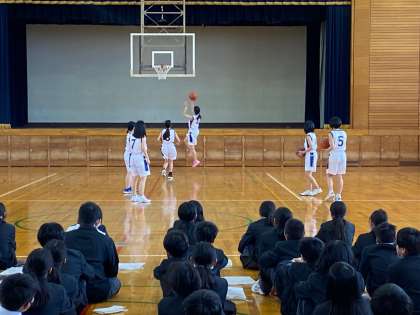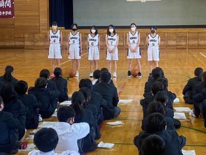 そして、女子バスケットボール部は実際に部活動の様子を実演してのアピールです。