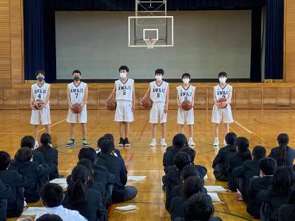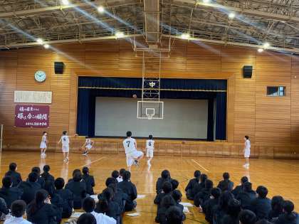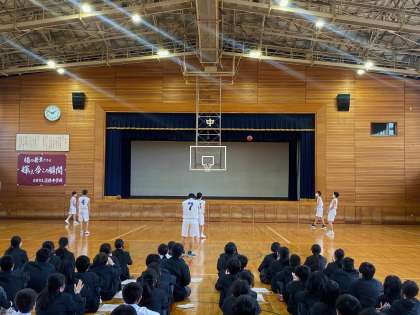 女バスに続いて、男子バスケットボール部の紹介も実演を交えてのアピールでした。