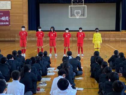 サッカー部は現在、部員数が少なく、新北野中学校との合同チームで試合参加しています。