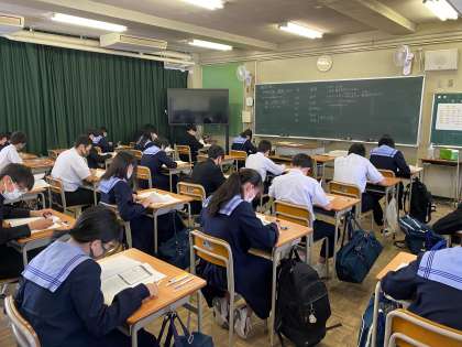 生徒たちは、3年生になって初めてのテストに緊張の様子で取り組んでいました。