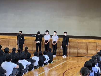 続いて、各常任委員会委員長から、先日の常任委員会で決まった委員会目標の報告がそれぞれあり、盛りだくさんの全校集会となりました。