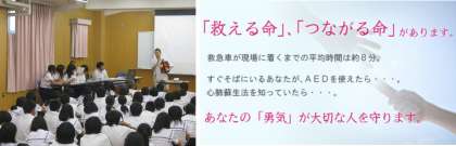 保健委員が司会進行。福井県内を中心にAEDの普及活動をしておられるNPO法人「『命のバトン』命をつなぐ心を育てる会」の方からのお手紙を紹介し、実習も行いました。