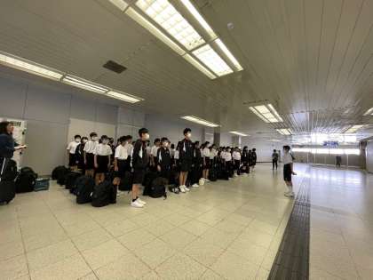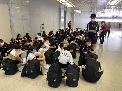 出発式の前に健康観察をし、信太山野外活動センターに向かいます。