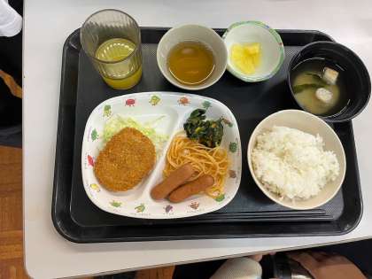 メニューはコロッケと、ウィンナー定食です。