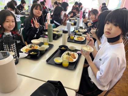 朝の歯磨き洗顔を済ませて、清掃とベッドメイク、シーツ返却や部屋の片付けが終わると、食事係が準備してくれた食堂で朝ごはんです。