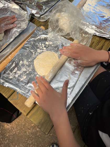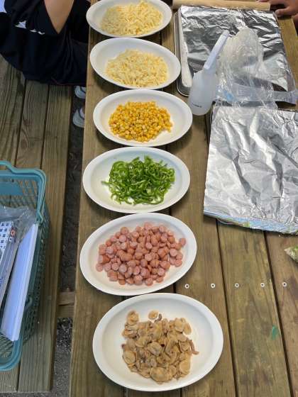 着々と生地が完成し、生地に乗せる具材も食べやすい大きさにし、作っていきます。