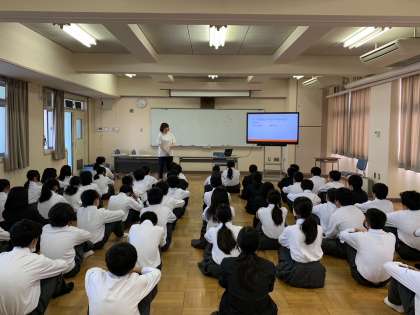 5月18日(木)の集会では、是永先生より来週にひかえた「定期テスト」についての説明がありました。