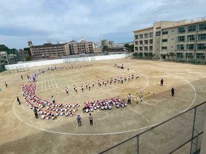 西淡路小学校は校舎の改築工事中の為、昨年度から本校の運動場で運動会を開催しています。
