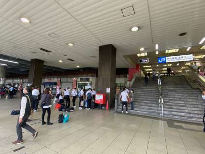 新大阪駅正面口7時30分の集合に続々と集まって来ました。