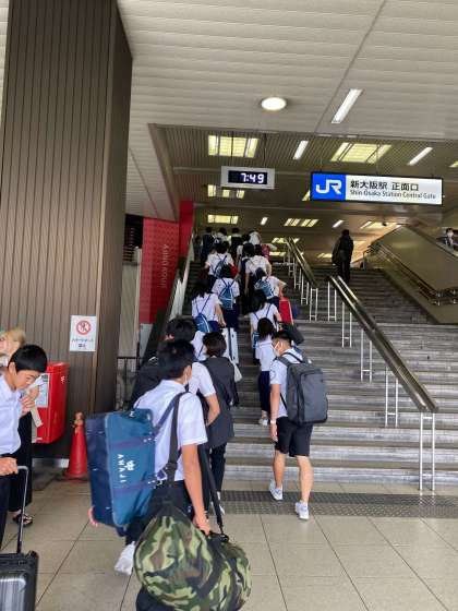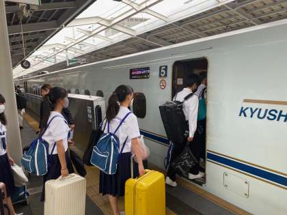修学旅行実行委員会の司会で出発式から大盛り上がり!