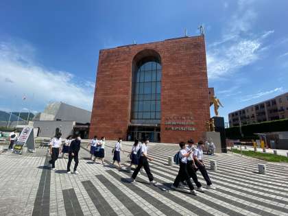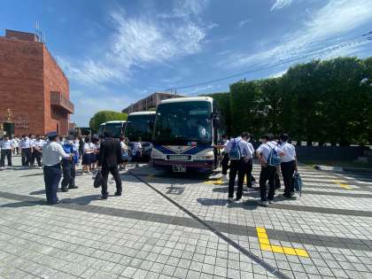 長崎原爆資料館を後にバスに分乗し、長崎市内フィールドワークへ。