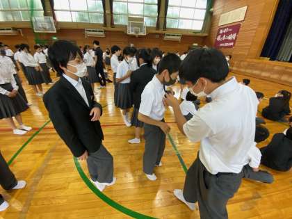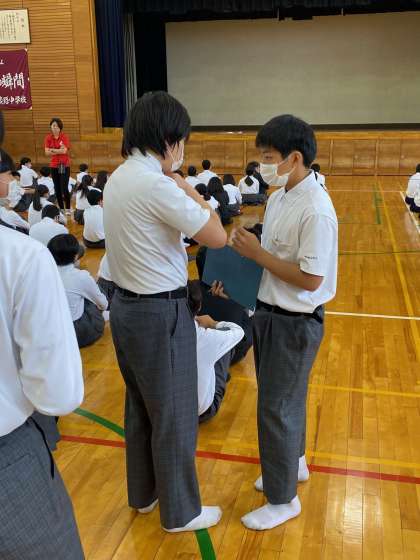萩原先生のお話しの後、月曜日の全校集会に続いて今週2回目となる風紀委員による風紀検査を行いました。