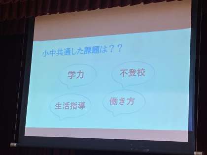 また小学校での役割、中学校での役割をお互いが理解し合う事で長期的な教育活動を見通し子どもたちの無限大の可能性を引き出そうと考えておりますので何卒よろしくお願いします。