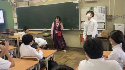 6月28日(水)6限後に、1年生に引き続き2年1組で、ソンセンニム交流が行われました。