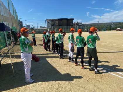 9月3日の日曜日、柴島グラウンドで今年度の東淀川区PTA女子ソフト大会が勝ち抜き戦50分規定で行われました。対戦相手は大桐中学校合同チーム。