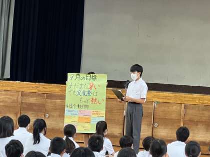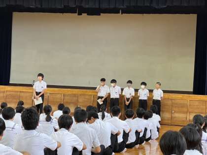 最後に先日行われた生徒常任委員会から、各委員長や生徒会から9月の目標について報告がありました。