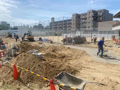 8月25日のプールの完成と共にテニスコートの新設に着工し、10月10日の引き渡しをめざして、着々と工事が進んでいます。